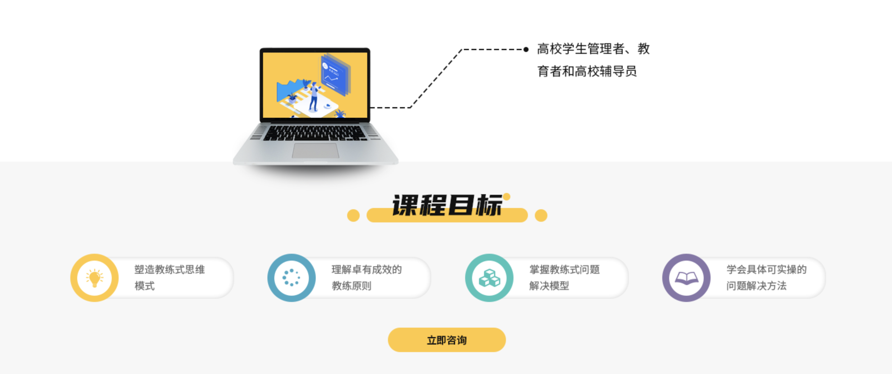 Effective coaching educator (ECE),卓有成效的教练型教育者是北森生涯讲师团队针对高校教师实际工作场景及工作挑战所设计的专业性问题解决课程。该课程采用当下最前沿的教练理念和模式,汲取教练关注结果、启发动机、落实行动的特点,将高校教师常见学生工作问题给予归类总结,并针对性地提出有效的操作方法。这些方法不仅可以提高高校教师的问题解决效率和能力,更能转变高校教育者的思维模式,使教育者获得全面的成长。